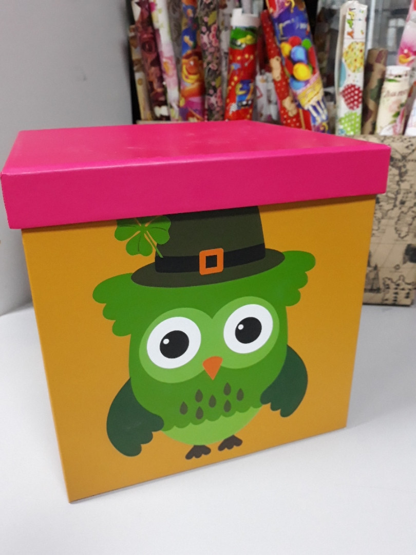 Подарункова коробочка дитяча з малюнком сова яскрава 22 див. Коробка для подарунків. Виглядає дорого і вишукано. В таку коробку можна упакувати подарунок жінці, коханій дівчині, мамі, бабусі, подруги, дівчинці. На 8 березня, день Святого Миколая, 14 лютого, день всіх закоханих, день народження.