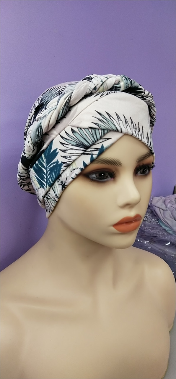 Елегантна шапка чалма бежево рожева з принтом квіти